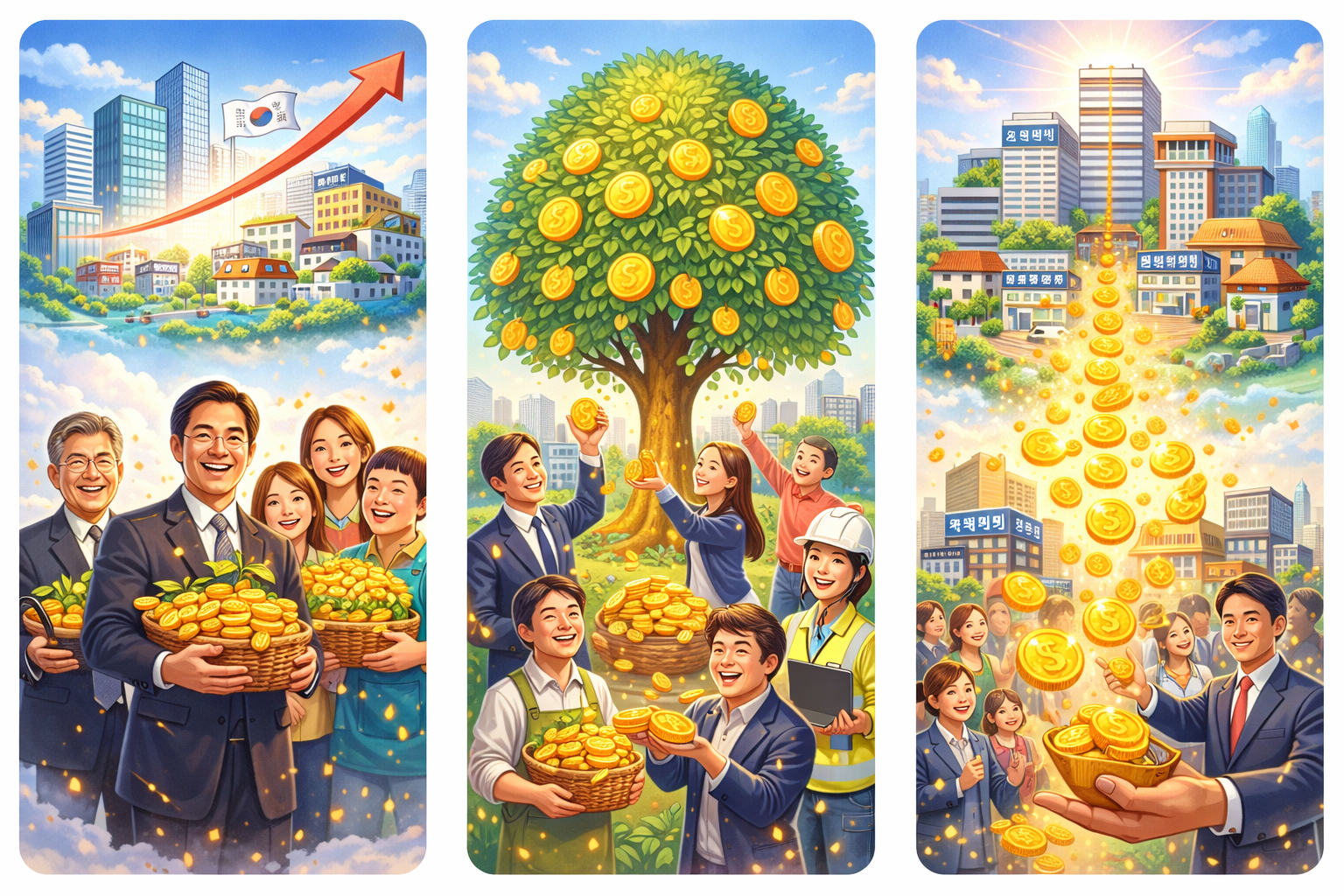 국민 여러분, 우리 대한민국은 그동안 초고속 산업화 시대의 '성공의 공식'을 따라 온 힘을 다해 압축 성장을 일궈냈습니다. 자원이 부족했던 대한민국은 특정 지역, 특정 기업, 특정 계층에 집중 투자하며 세계 10위 경제 대국의 빛나는 성취를 달성했습니다.